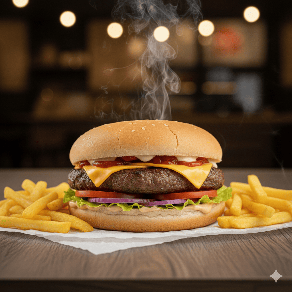 Cheddar, 2 steaks de boeuf45g, bacon, œuf