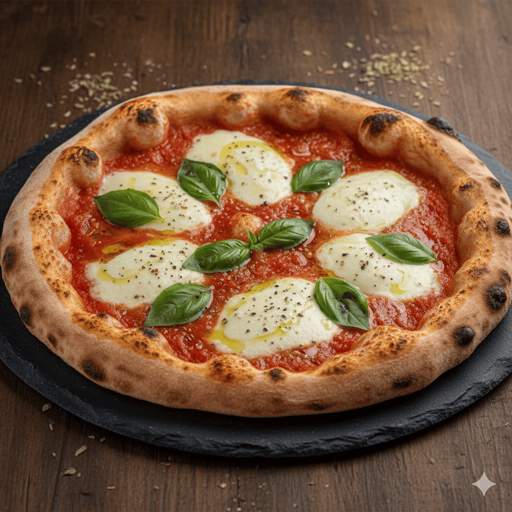 Base tomate, mozzarella, poulet, œuf