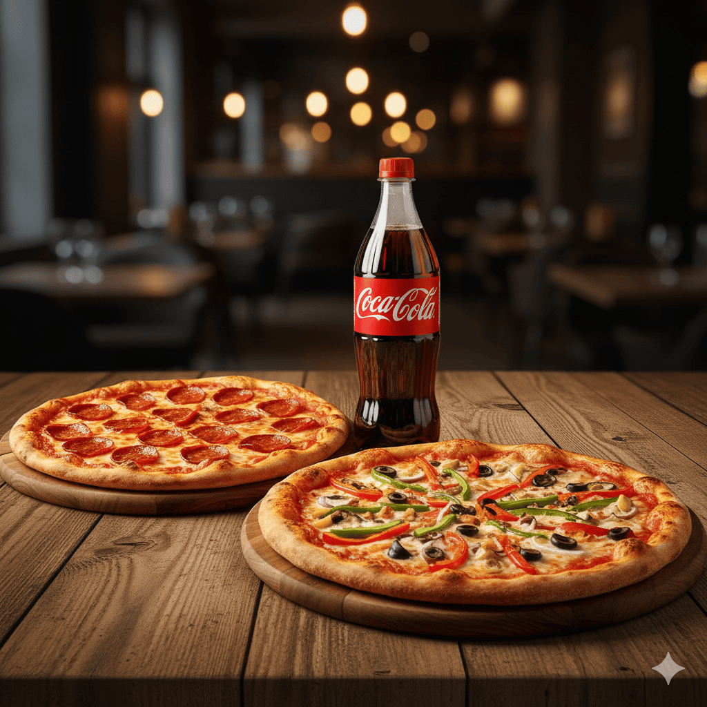 2 pizzas mégas au choix + 1 maxi coca 1L5