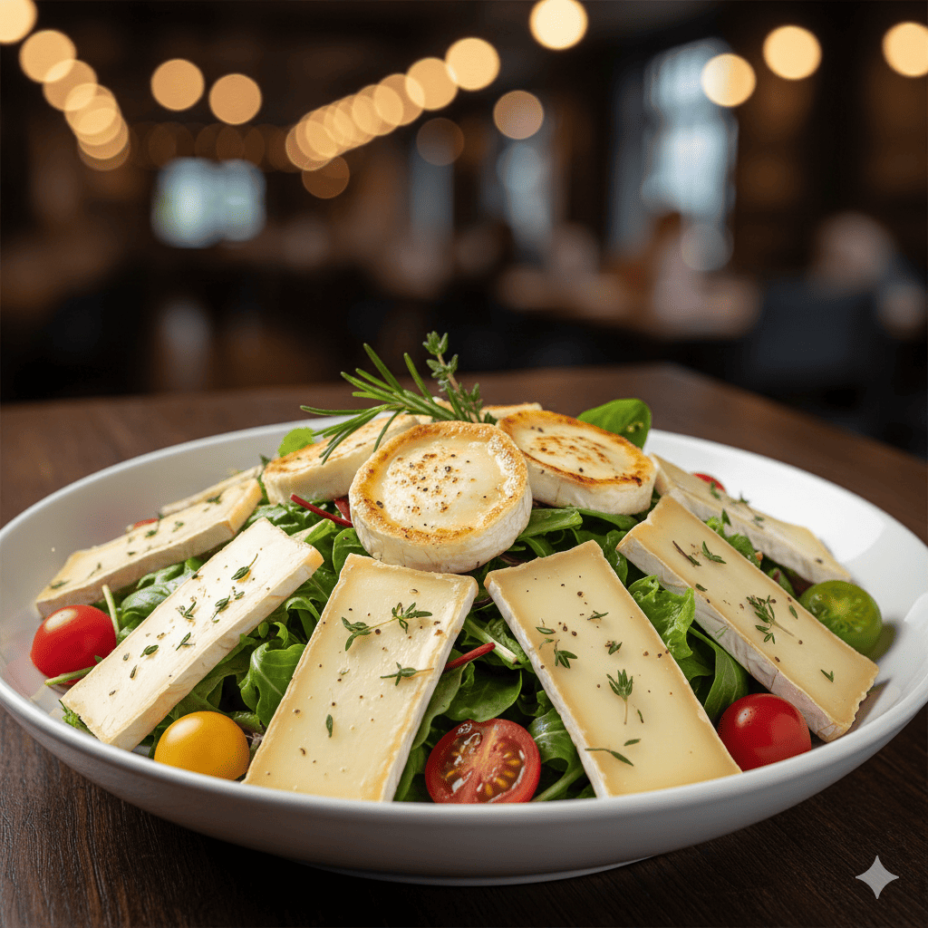 Salade verte, tomates, lardons, chèvres, pommes de terre